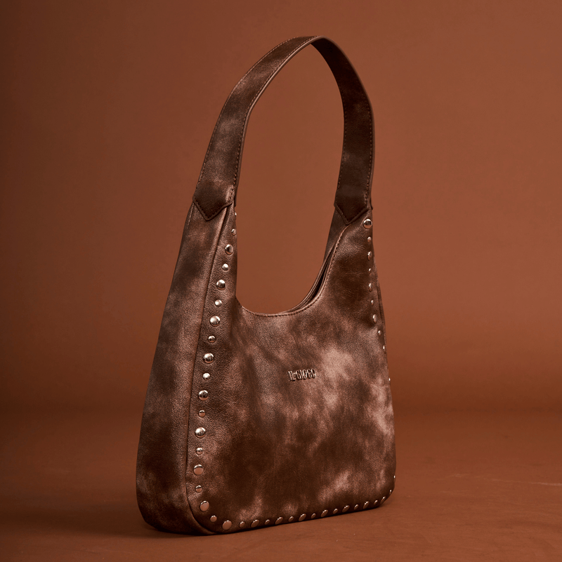 Un accesorio versátil con toda la actitud. Su acabado café envejecido y los detalles metálicos crean un vibe retro único que roba miradas. Perfecta para elevar tu look diario, sumando estilo y mucha personalidad a cada outfit. ✨🤎