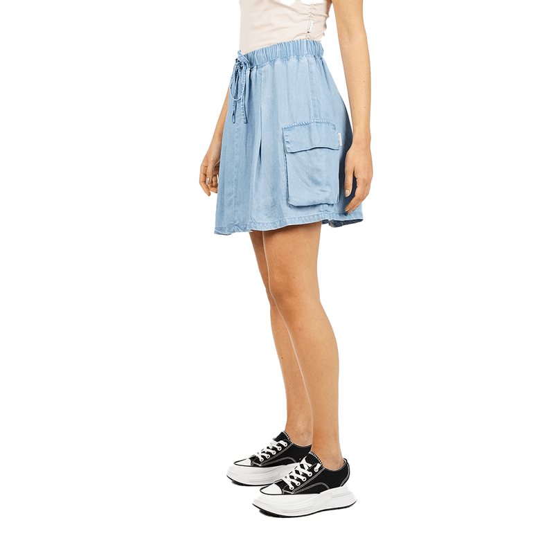 Nuestra Il Gioco Girl ocupa una talla S. Esta falda-short cargo en denim con Tencel combina lo mejor de ambos mundos: suavidad, frescura y una caída que se siente increíble. Con bolsillos laterales de inspiración utilitaria y short interno para máxima comodidad, mezcla espíritu street con un toque femenino irresistible.