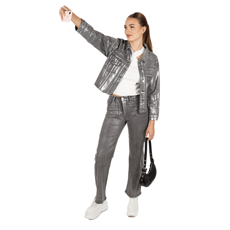Nuestra modelo usa talla 38. Suave pero firme, el calce Ariana equilibra estructura y soltura. Tiro alto, dos pinzas que definen la cintura y una pierna recta con bota ancha que alarga la figura sin forzar. Con detalles que estilizan (push in + push up) y una caída relajada, es el jean ideal para combinar elegancia, nostalgia y libertad.
