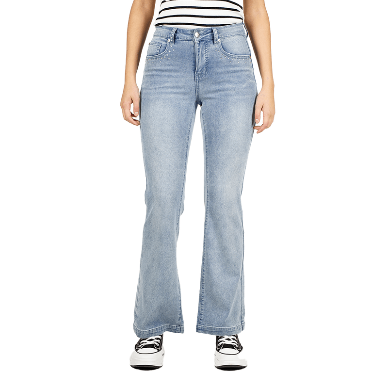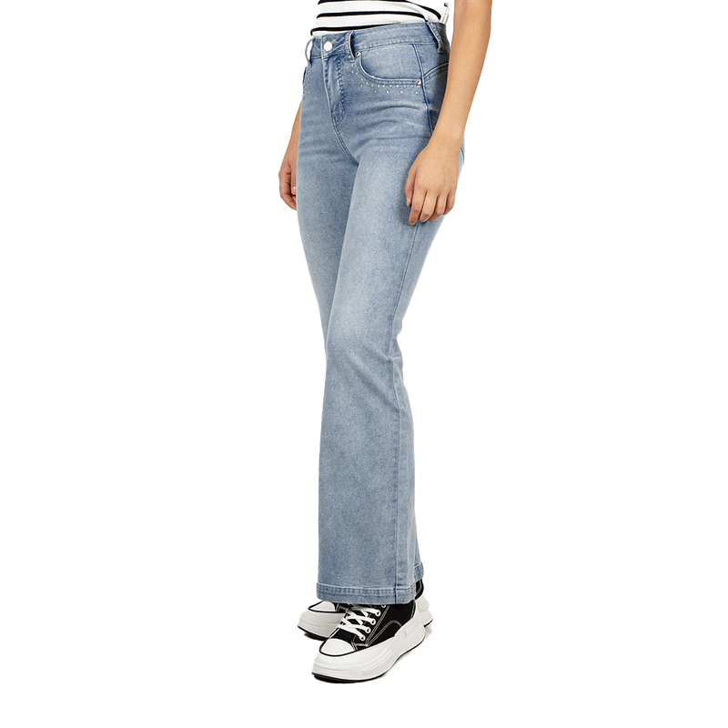 Jeans Britney Pfit Light Blue Detalles Strass Pasadores y Bolsillos