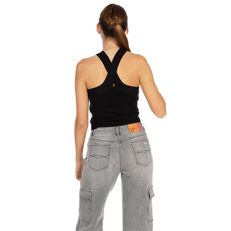 Polera Sin Mangas Essentials Knitwear Diseño Cruzado en Cuello DFS838392151G999XS