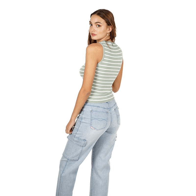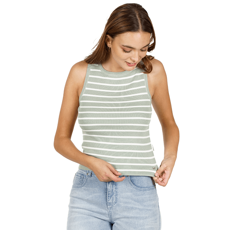 Polera Sin Mangas Essentials Knitwear Stripes Verde DFS838372151G723S